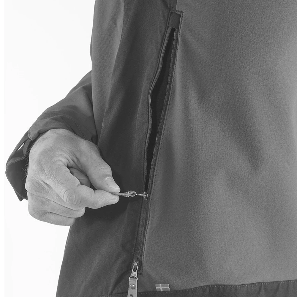 Selbstverständlich ist die Passform ebenso deinen Bedürfnissen, mit einem bequemen Schnitt angepasst. Deine Ausrüstung und kleiner Proviant für Unterwegs findet in den großen Reißverschlusstaschen auf der Brust Platz. Bei schweißtreibenden Trips durch die weite Wildnis und anstrengenden Terrain hat Fjällräven jeweil unter den Armen einen Zwei-Wege-Belüftungszipper mit Reißverschluss konzipiert. So bekommst du eine ausreichende Luftzirkulation, ohne die Keb-Jacke ausziehen zu müssen.