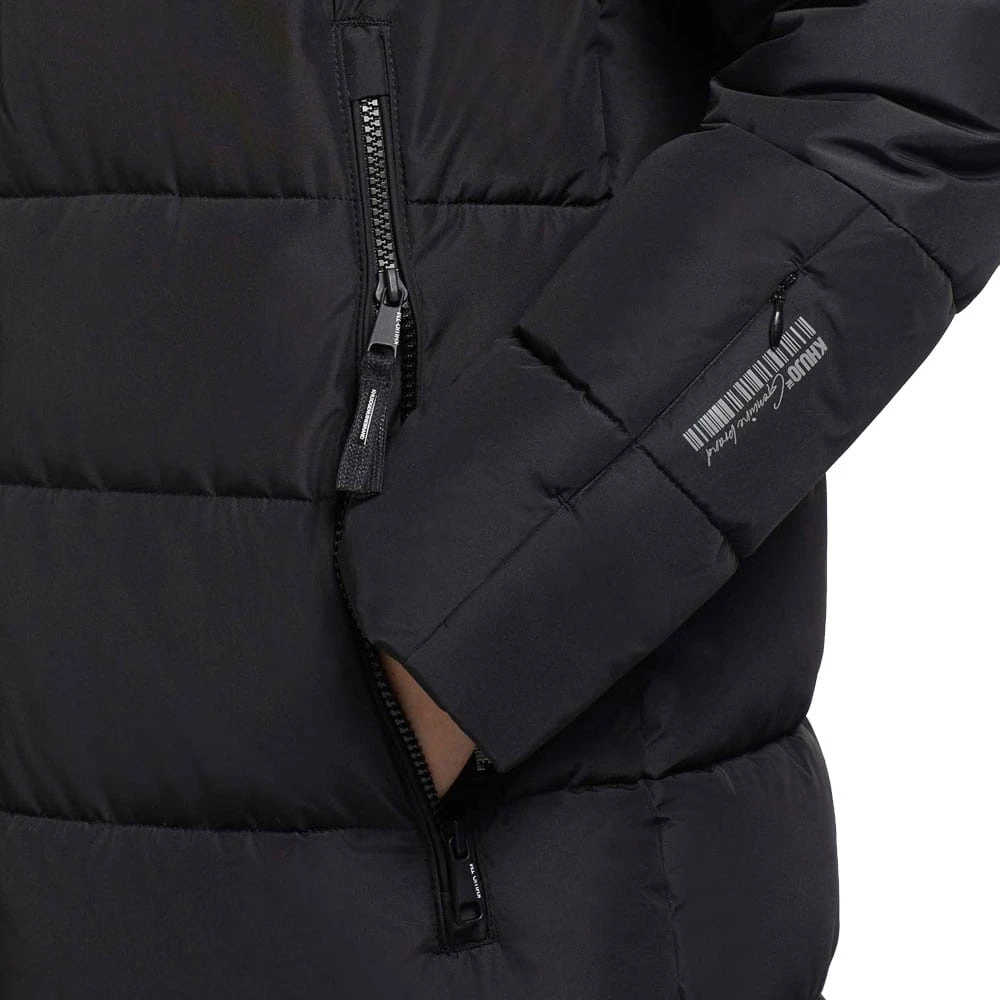 - Gefütterte, fest integrierte Kapuze durch Tunnelzug verstellbar
